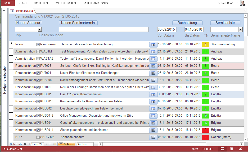 Bei einem Kunden hat man Jahrelang mit Exel, Word und Serienbriefen Veranstaltungen geplant. Das Problem war, dass außer dem Verantwortlichen niemand so recht über Termine, Raum und Recoursenbelegungen aussagekräftig war. Vertretungen waren verunsichert und es bestand damit ein so genanntes Kopfmonopol. Jahrelang hat man nach einem “Perfekten” Veranstaltungsplanungstool gesucht. Die Anforderungen waren zum einen in bestimmten Bereichen so hoch, dass es eher unwahrscheinlich ist eine solche Lösung auch noch zu finden, und wenn, diese dann auch noch bezahlen zu können oder wollen. Und zum anderen waren bestimmte Anforderungen gar nicht klar definierbar, da die Mitarbeiter noch nie mit einem solchen Tool gearbeitet hatten. Wie wurde der Knoten gelockert. Mit einer schlanken kleinen Anwendung die im ersten (kleinen) Schritt das Notwendigste abdeckt und Spielraum für Veränderungen schafft. In diesem Fall auf Basis von Access da die Integration bestehender Daten hier sehr einfach möglich war. Die Prozesszeiten für die Buchung, Buchungsbestätigung und Fakturierung eines Veranstaltungsteilnehmers oder das Controlling von Veranstaltungen wurden mit einfachen Mitteln erheblich reduziert.